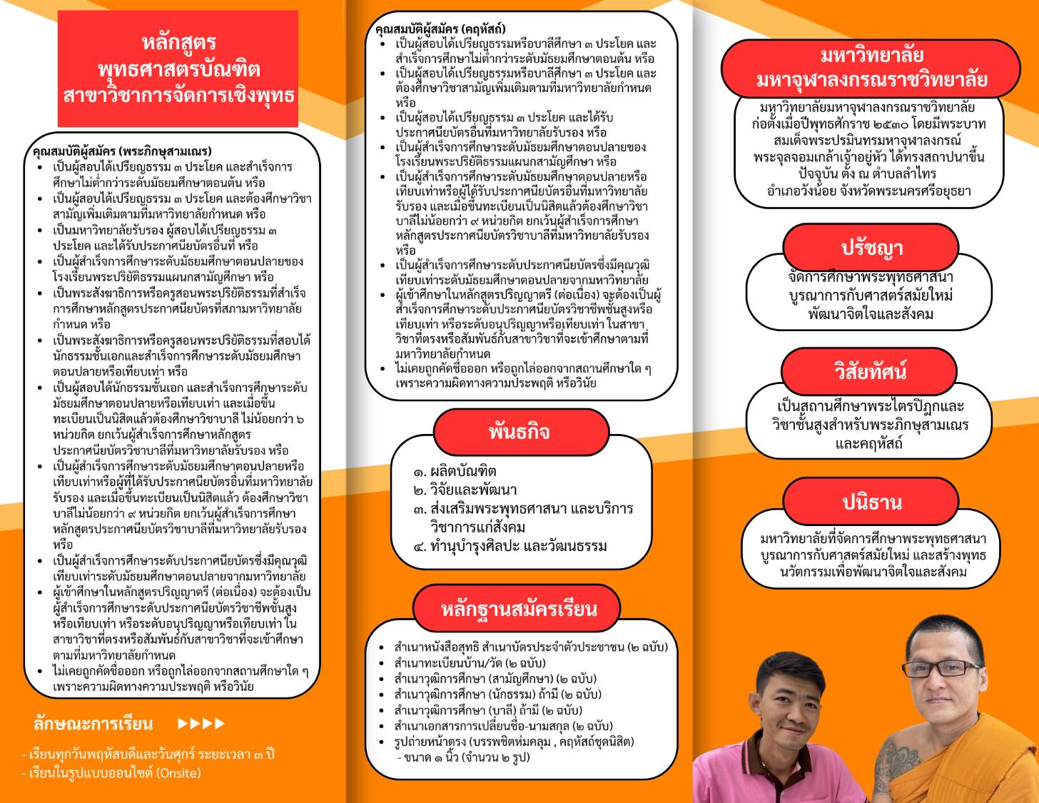 ประกาศรับสมัครพระภิกษุคฤหัสถ์ระดับปริญญาตรี สาขาวิชารัฐศาสตร์ และสาขาวิชาการจัดการเชิงพุทธ